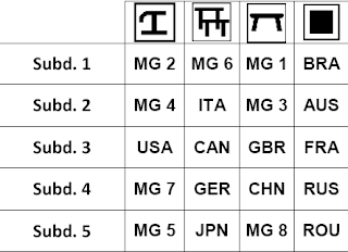 Curiosamente, ao fazer um recap de como o Brasil se saiu nas últimas competições olímpicas, de acordo com seu olympic draw, descobri que o Brasil foi sortudo em todas até aqui. Tanto em Atenas/2004 como em Beijing/2008 (e até no Evento Teste em Janeiro/2012), o Brasil competiu na 4ª e última subdivisão. Mais do que isso, o Brasil vai bem na rotação solo-salto-paralela-trave.