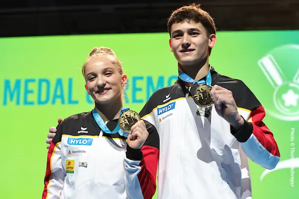 30 de maio de 2025Karina Schönmaier e Timo Eder são os primeiros campeões europeus por equipe mista, em Leipzig. A dupla alemã estreou essa nova modalidade da ginástica artística que foi formalizada pela FIG neste ano e deverá seguir ao menos até os Jogos Olímpicos de Los Angeles, em 2028.